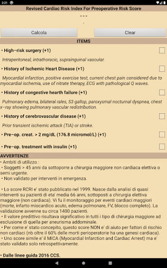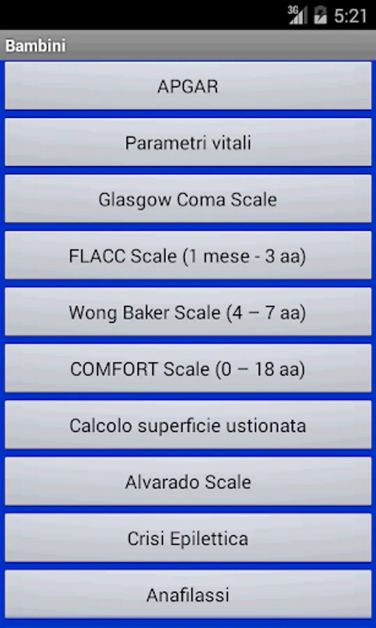 In the 'Utility' section, we can calculate, among other things, the creatinine clearance, body surface area, the ideal weight. There are also instruments for the measurement of both the level of sedation that the entities' of the pain (both for adult and pediatric patients).