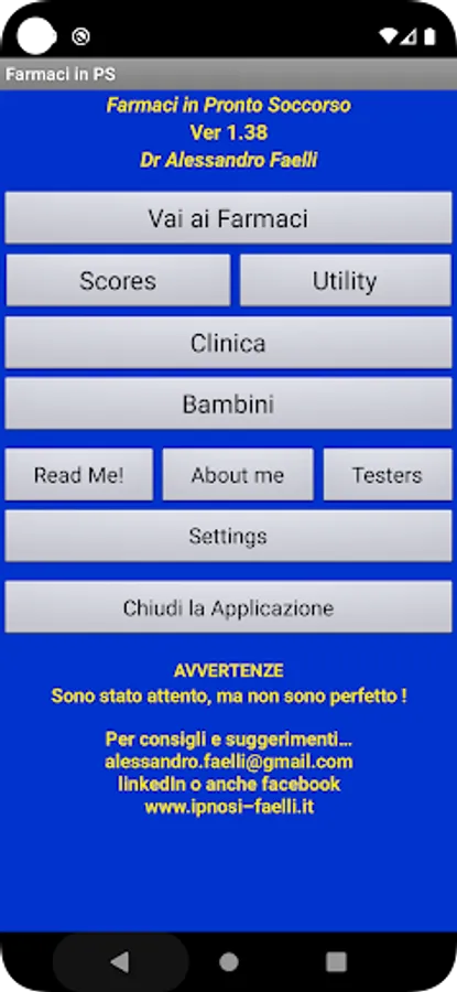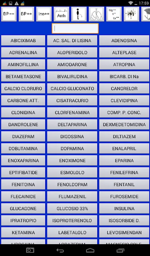 A compact, reliable application to always have the most useful drugs in emergencies and medical emergencies, both on the ground (118) and hospital (emergency department, SO, Intensive Care Unit, Department).
