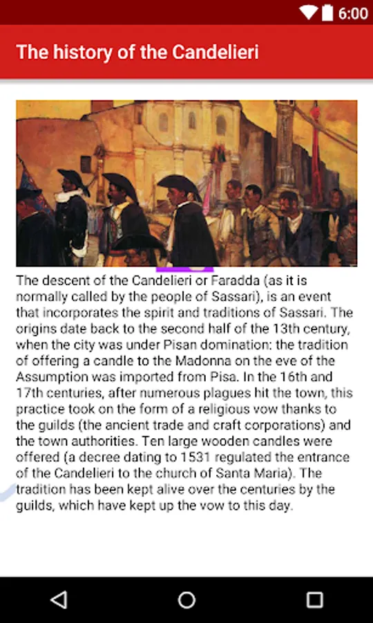 The descent of the Candelieri or Faradda (as it is normally called by the people of Sassari), is an event that incorporates the spirit and traditions of Sassari. The origins date back to the second half of the 13th century, when the city was under Pisan domination: the tradition of offering a candle to the Madonna on the eve of the Assumption was imported from Pisa. In the 16th and 17th centuries, after numerous plagues hit the town, this practice took on the form of a religious vow thanks to the guilds (the ancient trade and craft corporations) and the town authorities. Ten large wooden candles were offered (a decree dating to 1531 regulated the entrance of the candelieri to the church of Santa Maria). The tradition has been kept alive over the centuries by the guilds, which have kept up the vow to this day.