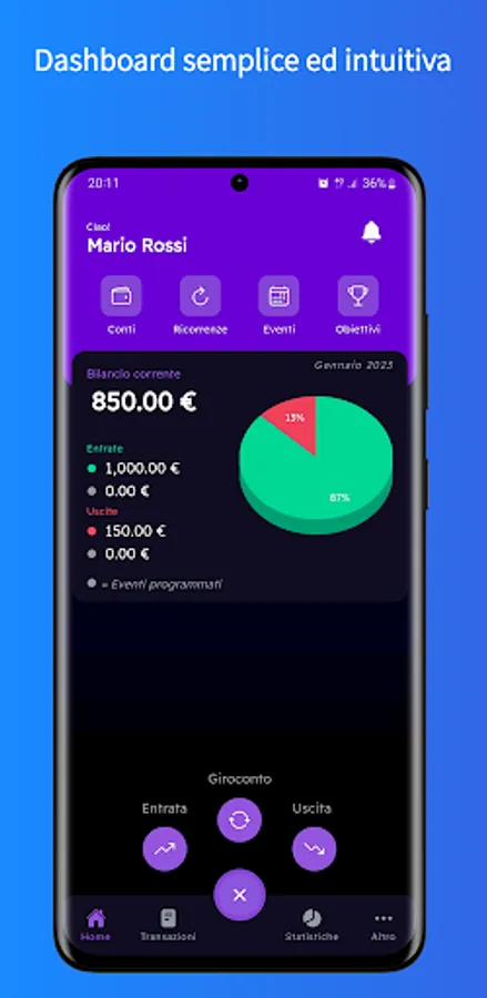Moni allows you to recreate your financial situation in a single platform, capable of generating transactions quickly and intuitively. It is possible to enter anniversaries, expenses or scheduled events or even plan goals to be achieved in the future.