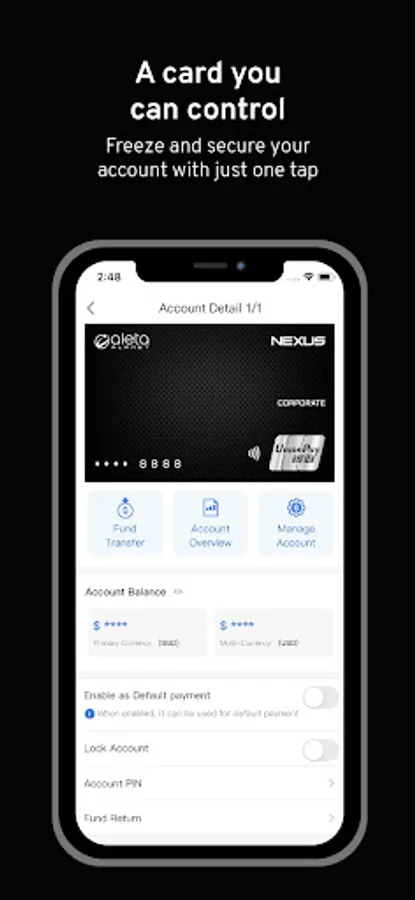 If you suspect that your personal information or card information has been compromised, you can easily lock your virtual card through the Nexus app.