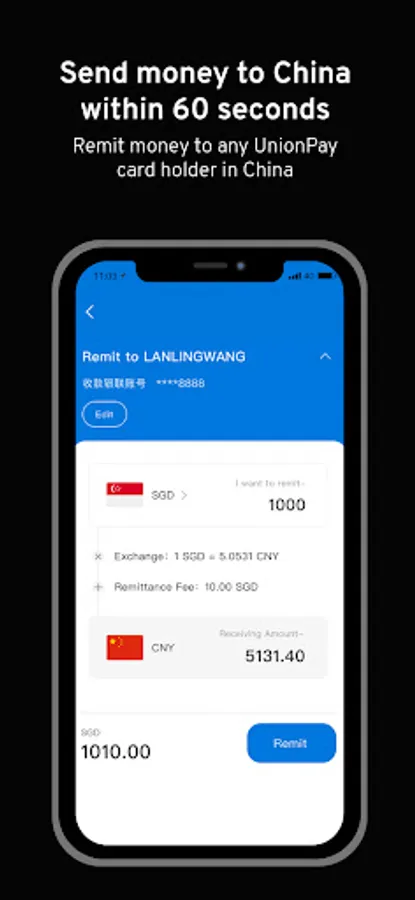 Send or receive money from UnionPay card holders anywhere in the world, all within 60 seconds.