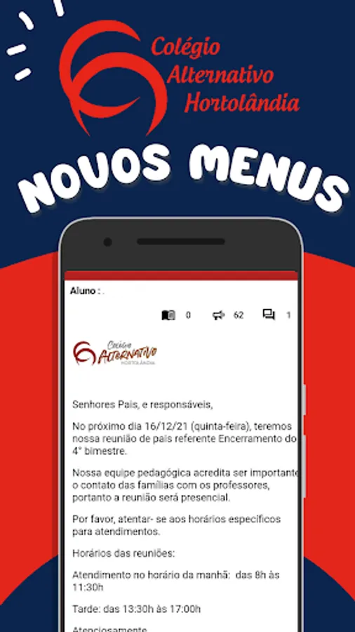 Application of Colégio Alternativo de Hortolândia, the main means of communication between the family and the school.