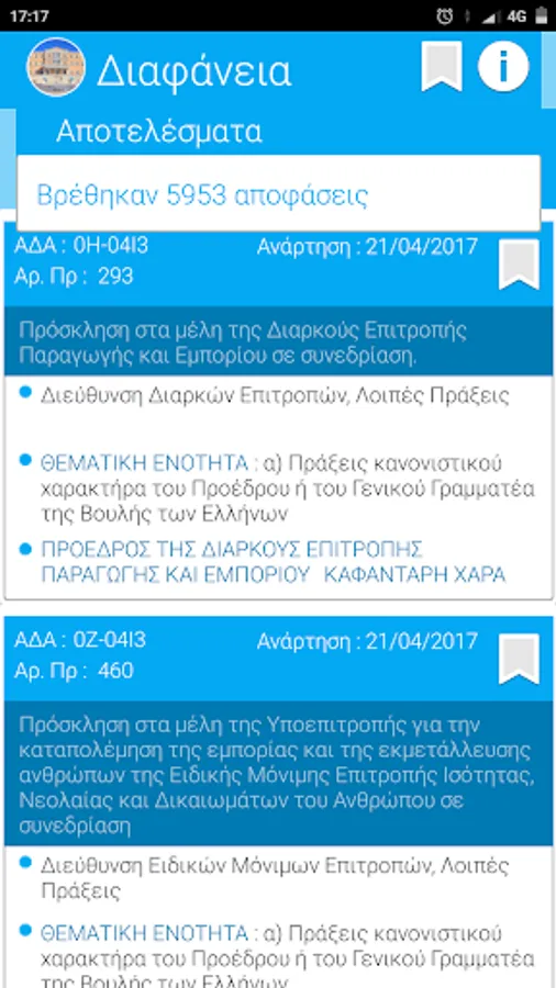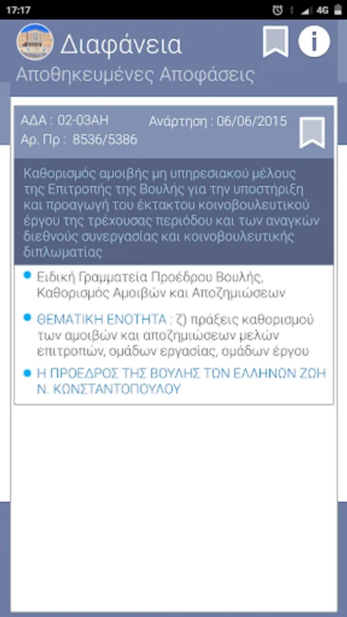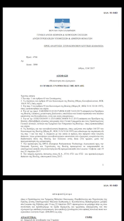 Are you interested in getting the latest updates on Hellenic Parliament's decisions regarding its administration, budgeting, operational costs and the management of its personnel? Download the application to easily access the latest uploads of parliamentary decisions from your mobile device.