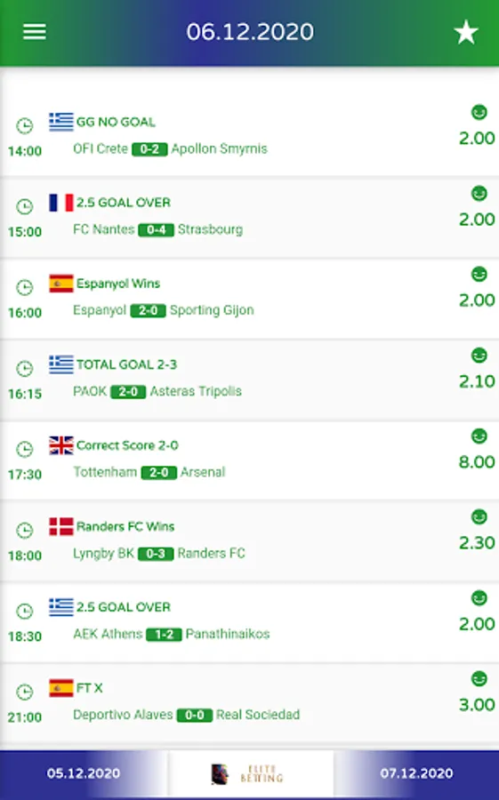 Betting Predictions application Germany, Spain, England, Italy, France, Turkey, Belgium, Portugal, Austria, Denmark, Scotland, Russia, Ukraine, Greece, Argentina, Romania, Brazil, Poland, Ireland, Japan, Netherlands, Switzerland, Sweden . It publishes bets in Norway, Czech Republic, Croatia and many other similar countries.