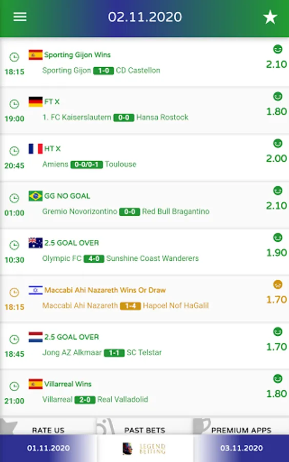 Betting Predictions application Germany, Spain, England, Italy, France, Turkey, Belgium, Portugal, Austria, Denmark, Scotland, Russia, Ukraine, Greece, Argentina, Romania, Brazil, Poland, Ireland, Japan, Netherlands, Switzerland, Sweden . It publishes bets in Norway, Czech Republic, Croatia and many other similar countries.