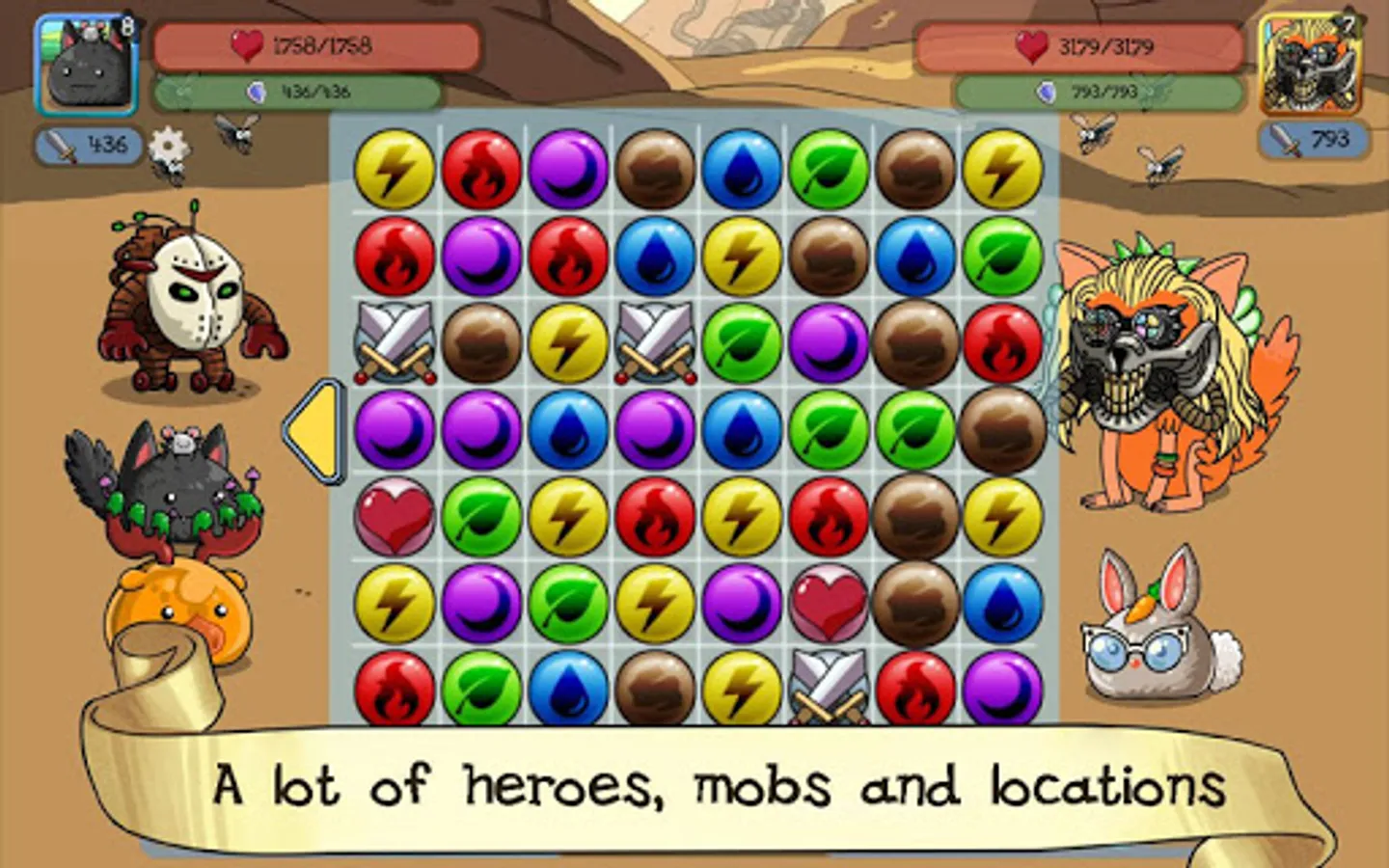 MATCH 3: Fight deadly monsters by matching magical orbs and order your heroes to strike. Match 3 or more to create devastating combos to boost your attacks and vanquish your enemies.