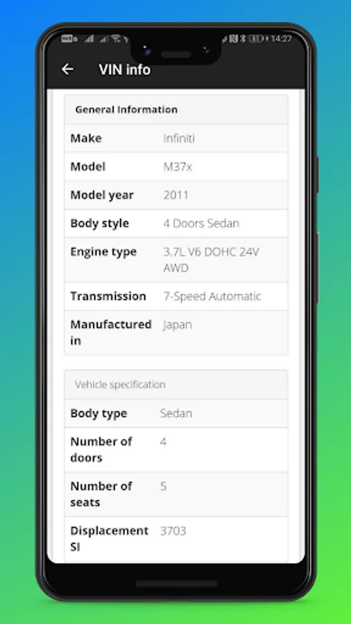 This is a universal VIN decoder. Every car has a unique identifier code called a VIN. This number contains vital information about the car, such as its manufacturer, year of production, the plant it was produced in, type of engine, model and more. For instance, if someone wants to buy a car, it is possible to check the VIN number one the online database to ensure that the car was not stolen, damaged or illegally modified. The VIN number has a specific format that is globally recognized. This format was implemented by the ISO institute. Every car manufacturer is obliged to mark all its vehicles in this special format. This online service allows a user to check the validity of the car and get detailed information on almost any VIN number, search car parts and check the car's history. The VIN also allows a user to check the market value of a new or used car.