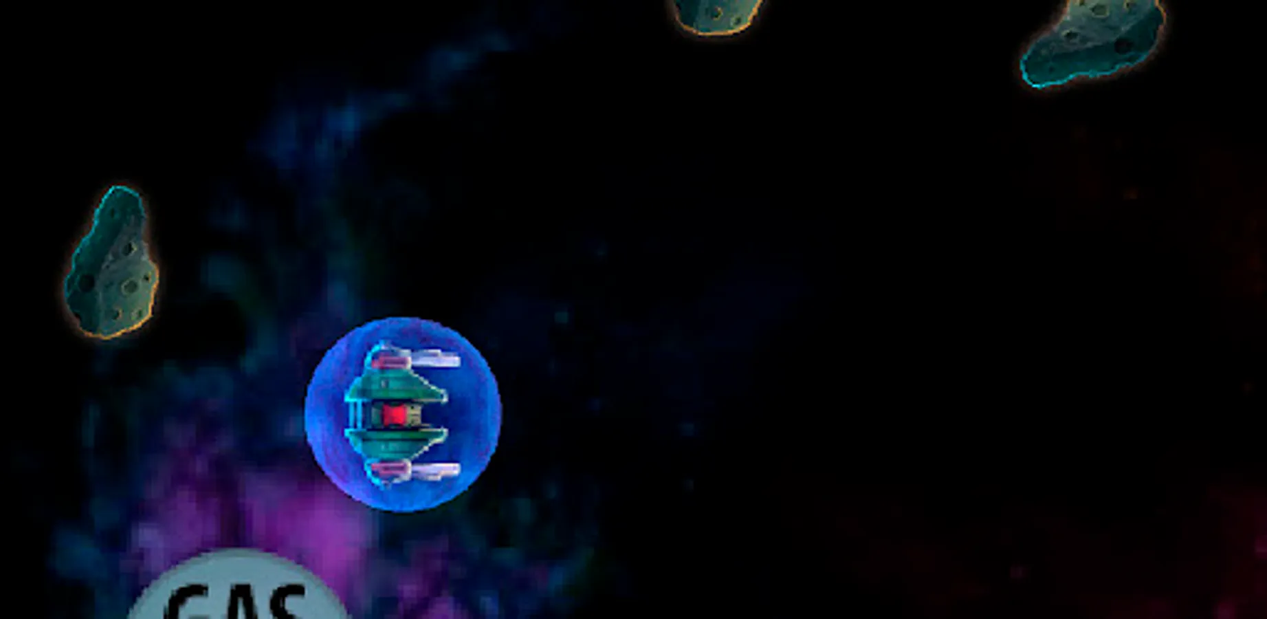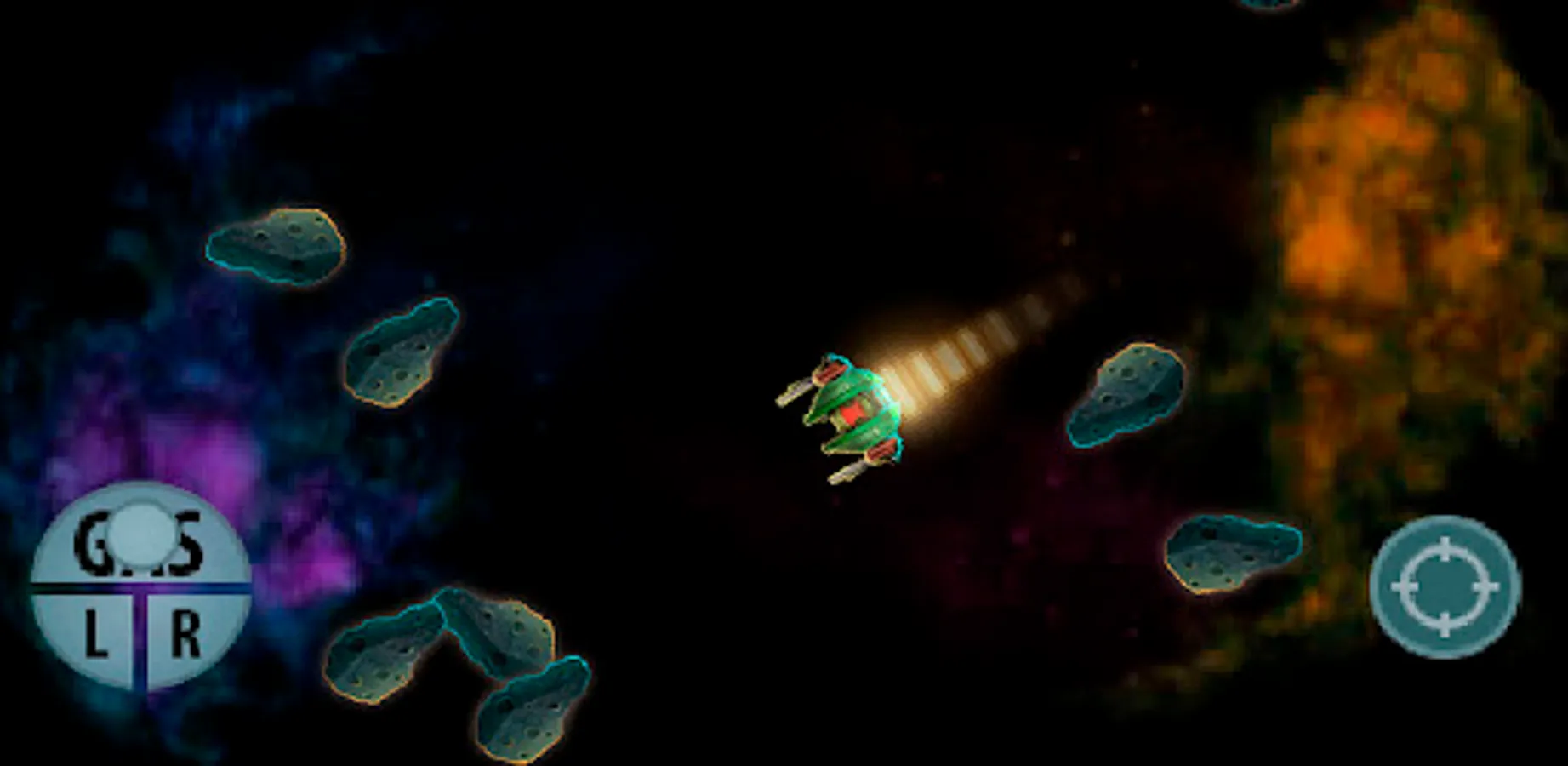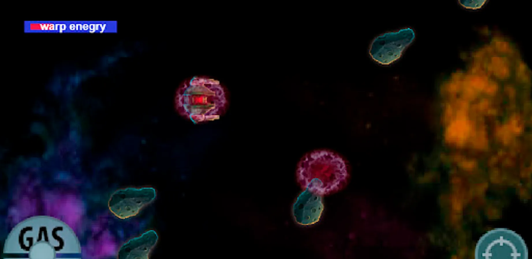 На космическом корабле уничтожаем астероиды и получаем бонусы из щитов которые дают возможность сталкиваться с астероидами. Есть возможность телепортироваться в любую точку игрового пространства. И получаем очки за уничтожение астероидов.