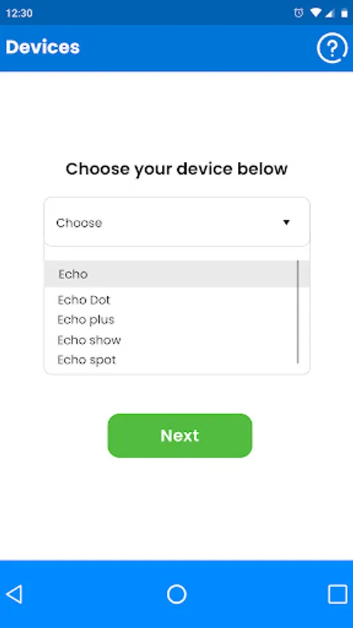 Tap on ‘Choose Your Device’ drop-down box and make your choice from the list (i.e., Echo, Echo Dot, Echo Plus, Echo Spot, Echo Show, Echo Sub, Echo Input, or Tap).