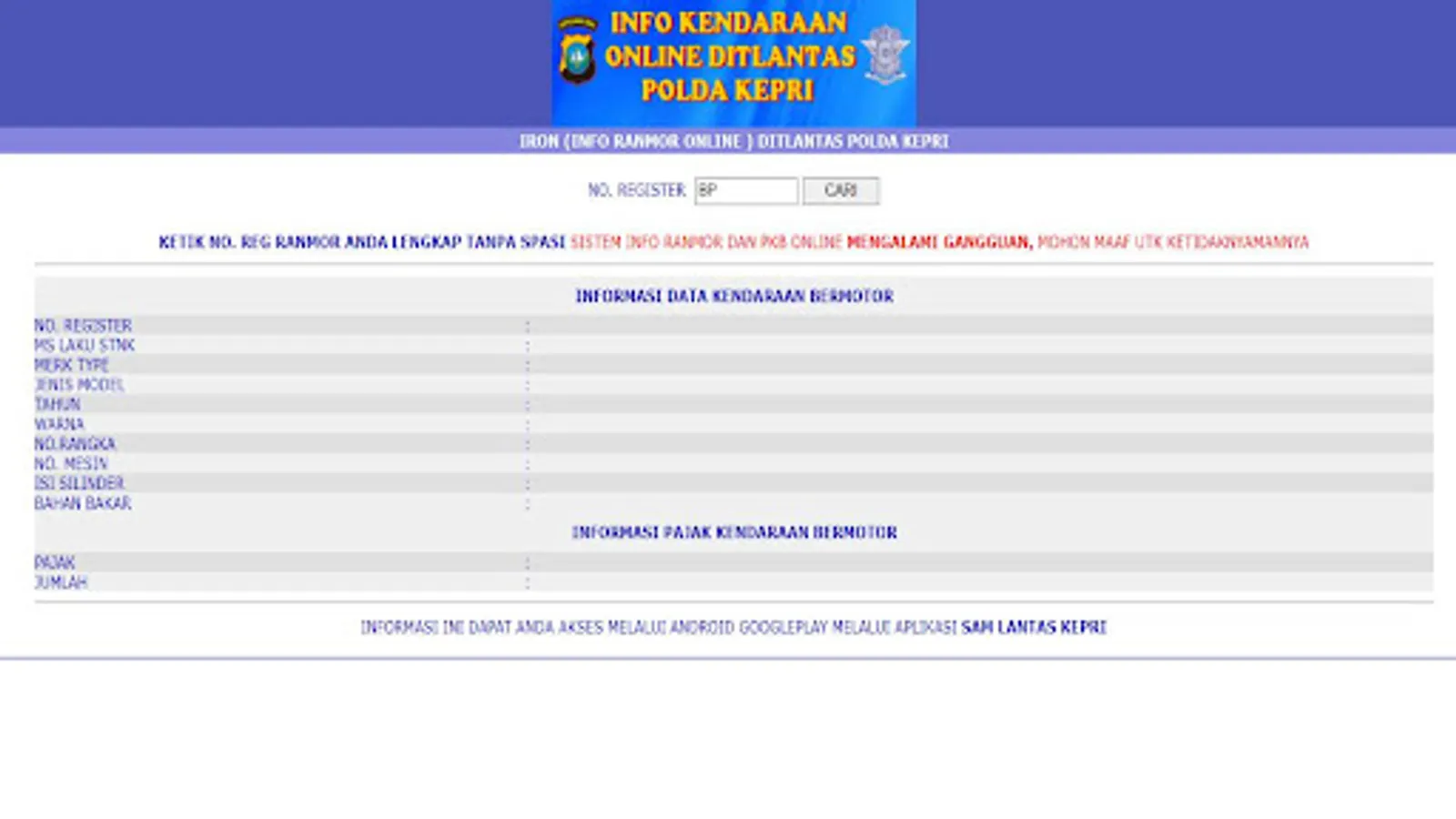 - This application was made by fanbase and to help the people of the Riau Islands so they can check their vehicle tax online