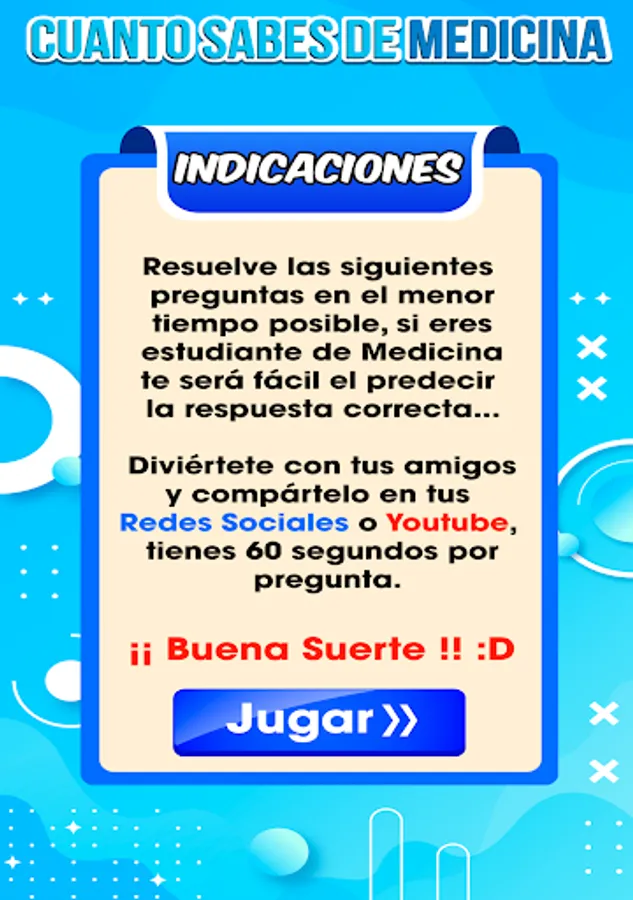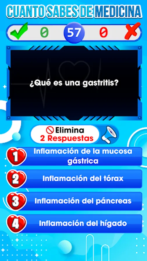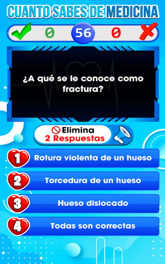 You have a time limit of 60 seconds in which you must answer correctly either names of diseases, parts of the body, etc. It will not be difficult for you to adapt at all, since it has a friendly and striking design so that you can carry out this medicine challenge with complete peace of mind.
