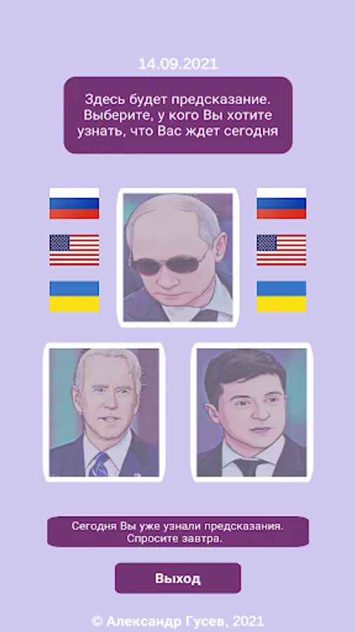 Only you will learn from the presidents themselves what awaits you! Predictions for the current day have been tested for centuries, although some treat them with humor. How to treat is your business. It is best to use the Application early in the morning.