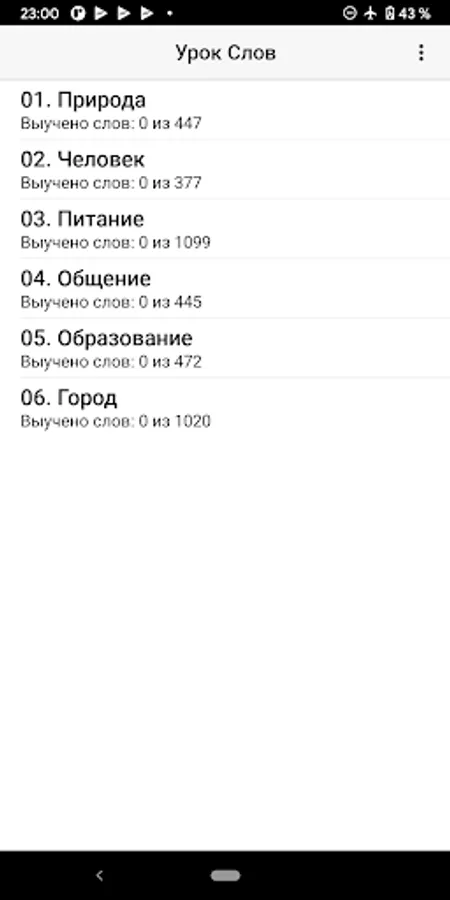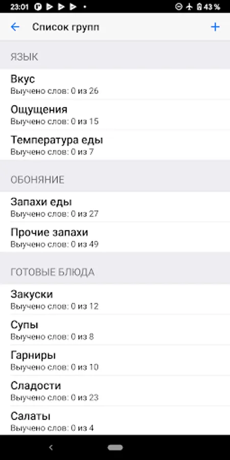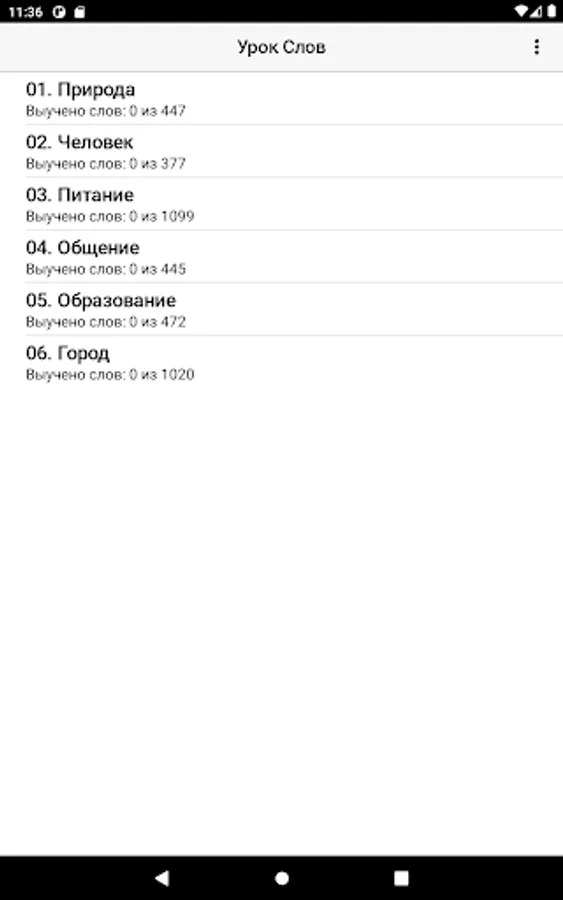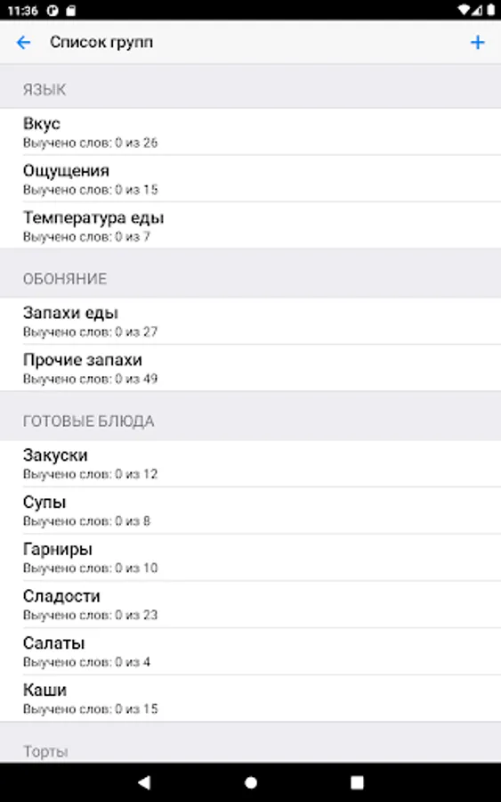 All words are divided into 4 levels: Vocabulary -> Group -> Subgroup -> "Important words". This allows you to combine words by context to make them easier to remember.