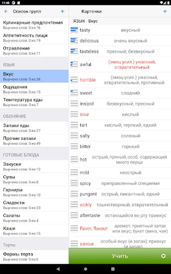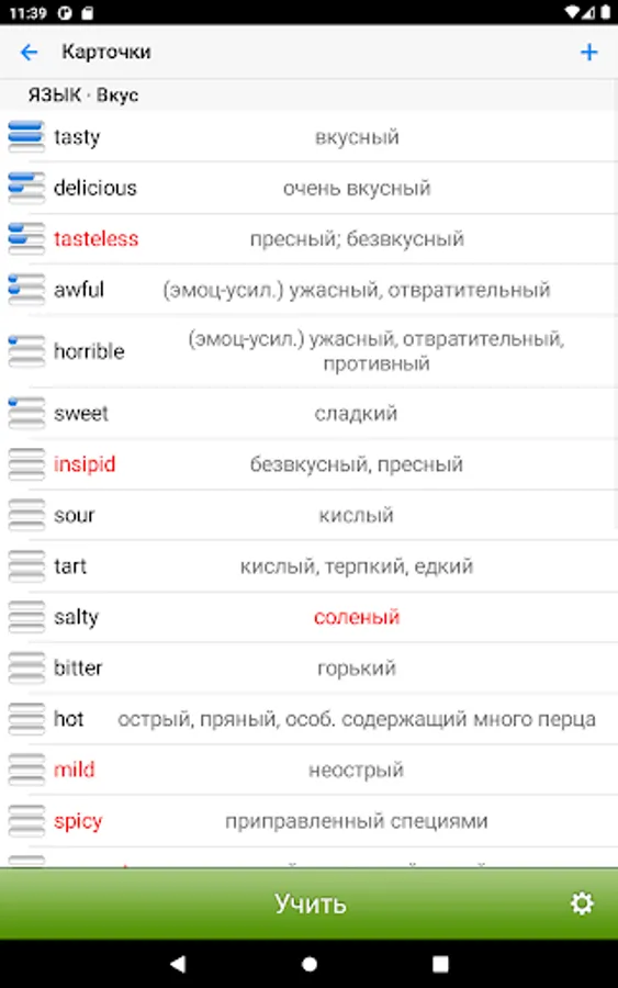 Companion application for the English-Russian Dictionary. Create flashcards directly from the English-Russian dictionary. Learn and repeat new words with exercises