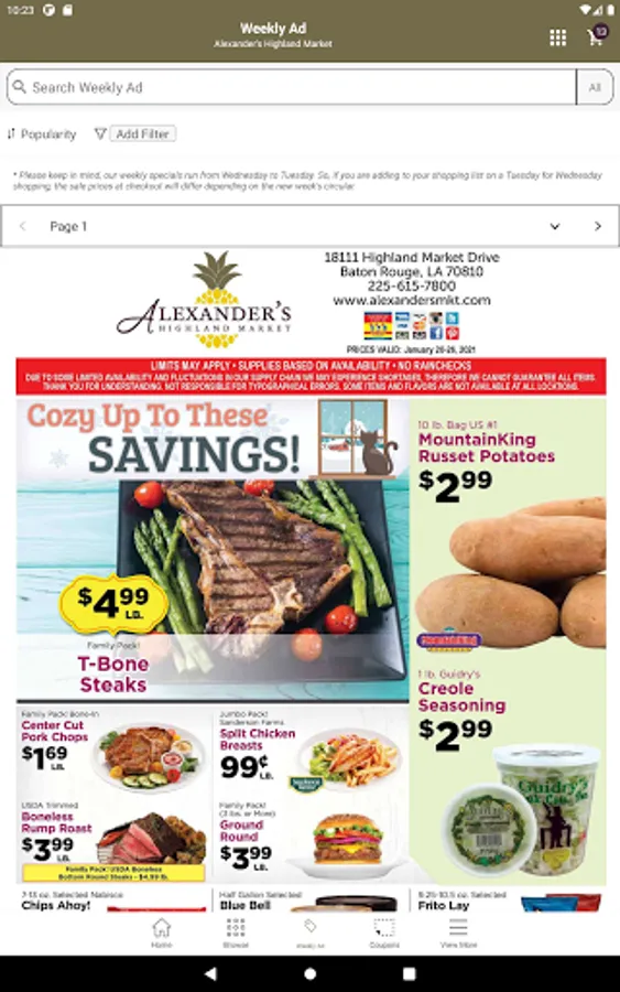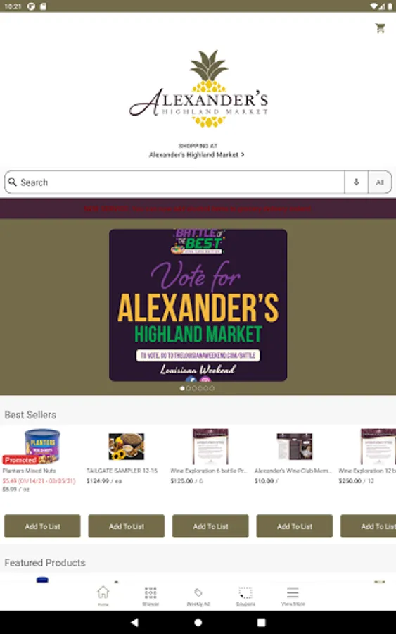 "Order same-day groceries from Alexander's Market and get the same prices available in-store, including all sales and special offers. Scan products in your pantry to build your lists, saving you time and making sure you get the same products, even when having the store shop your order.