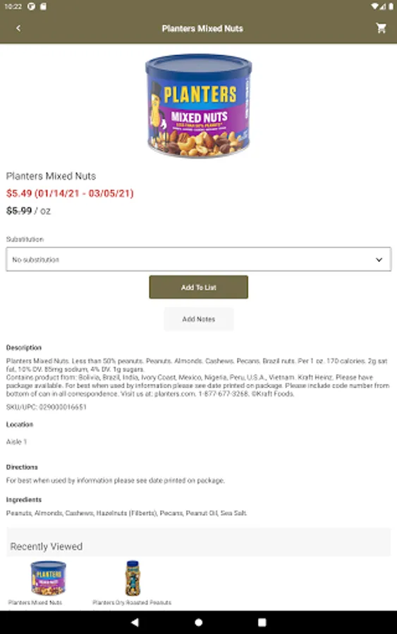View information about products, including pictures, descriptions, ingredients, instructions and nutritional information.
