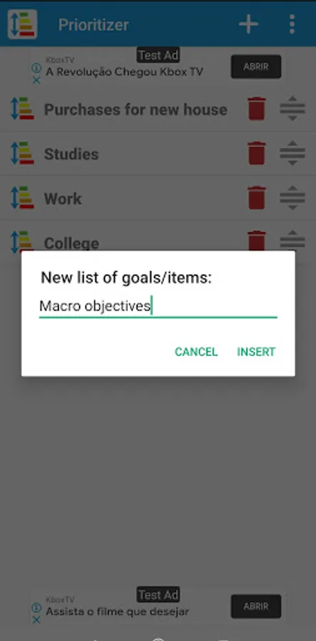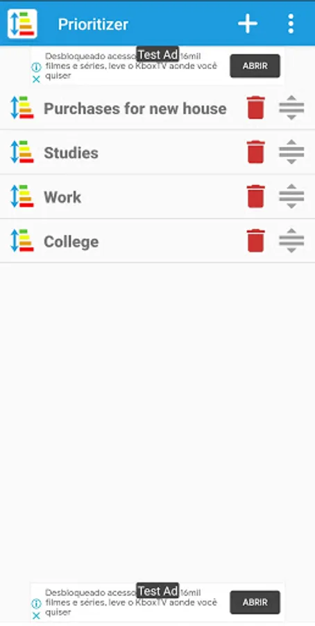 The Priority Manager app helps you for choose which task, idea and / or objective is most important for moment and what your next priorities are. It is possible to create several categories to start organizing yourself and prioritize the things that are in doubt.