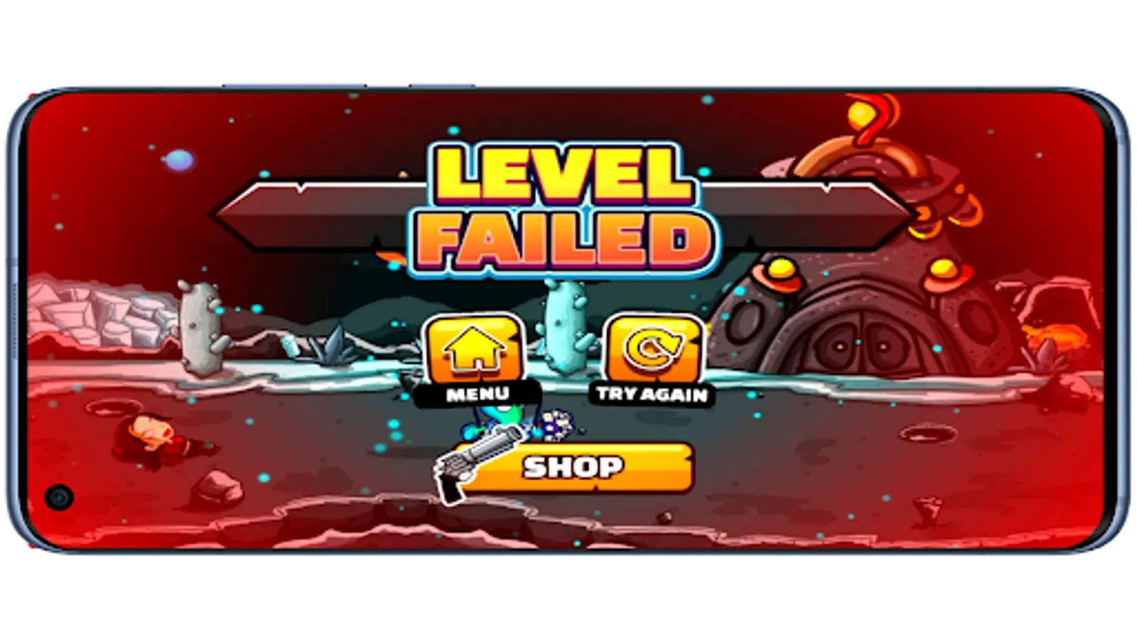 This 2D shooter game follows a base defense style where you fight off waves of alien enemies. Collect the coins dropped by the aliens to purchase upgrades. The game has 30 levels that are unlocked sequentially, and you can't replay previously beat levels without restarting the game. The levels get harder as you progress, with more waves of enemies to defeat.