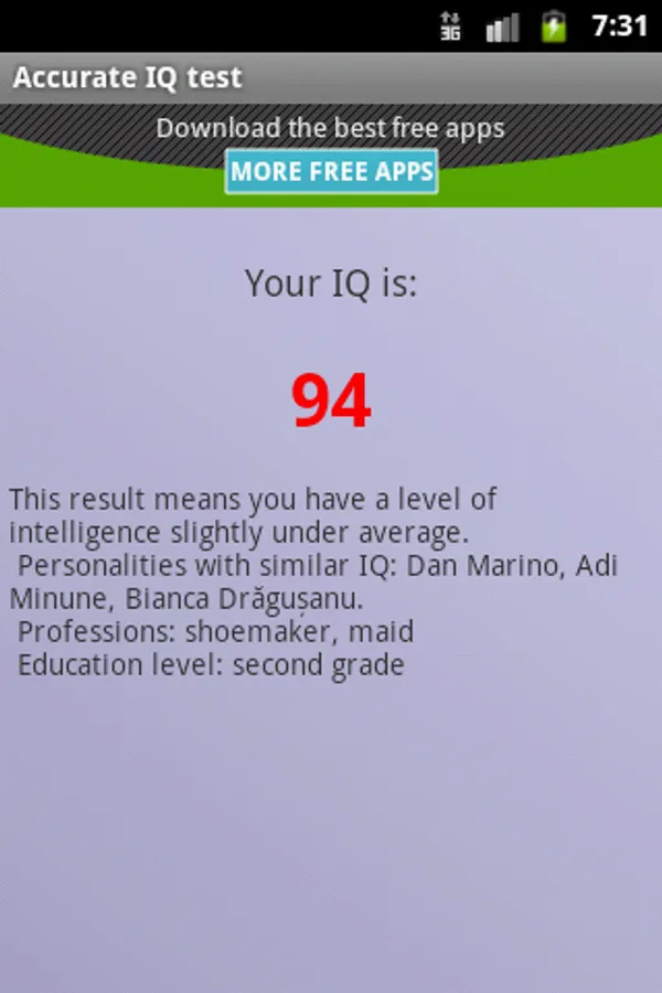 This is a free IQ test in English used to measure your intelligence quotient. Answer to all 50 questions and find out how smart are you!