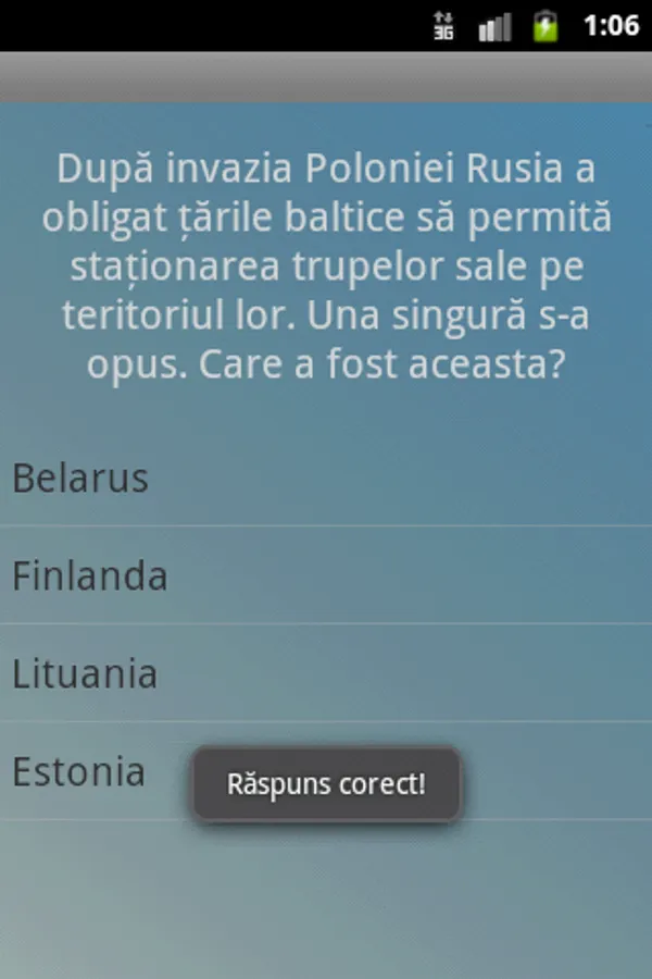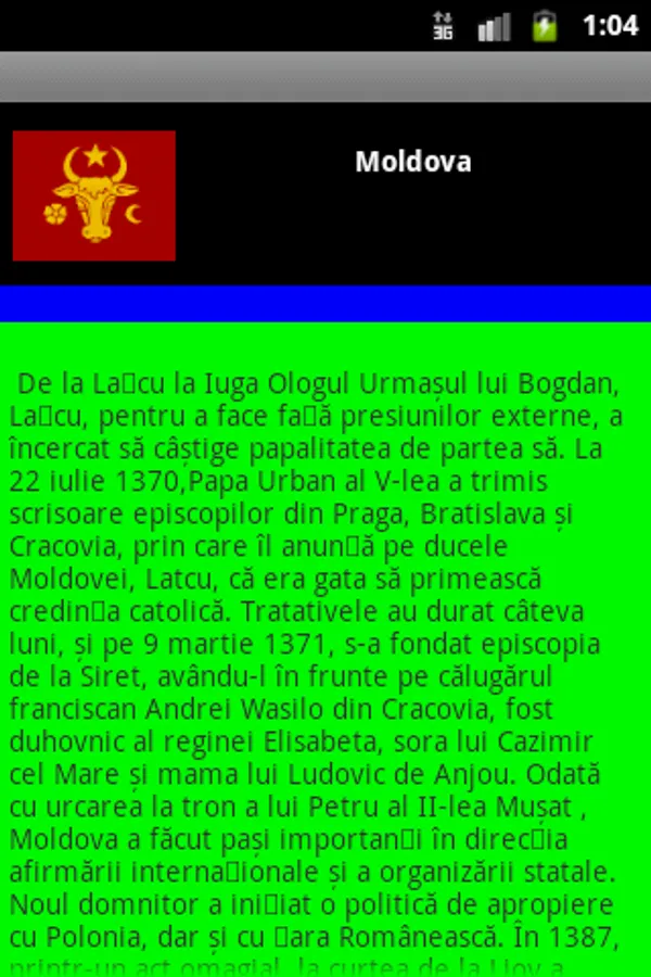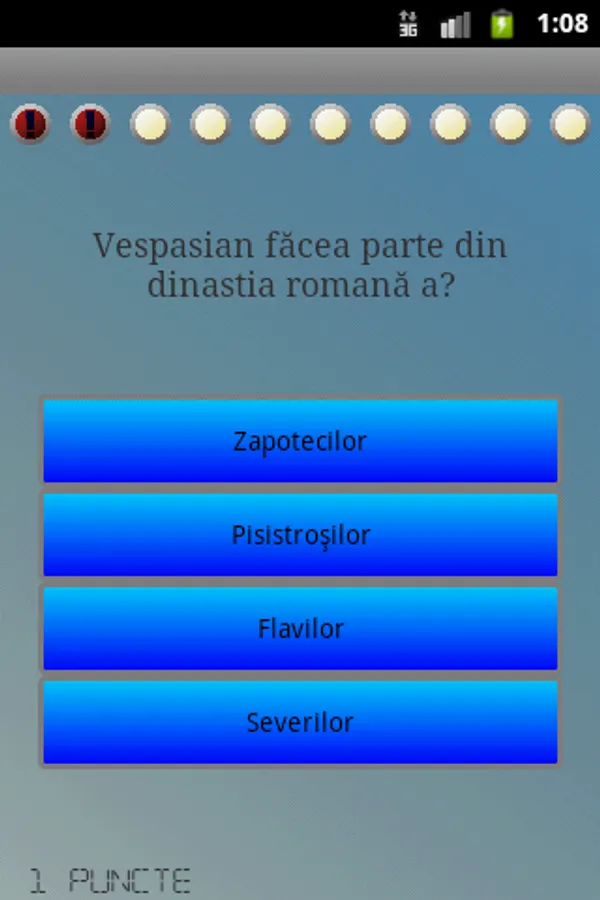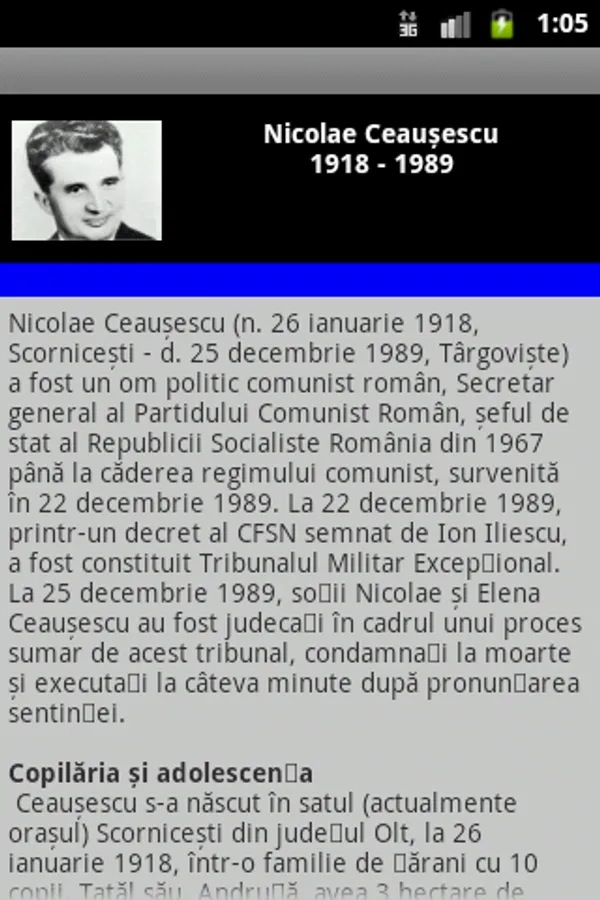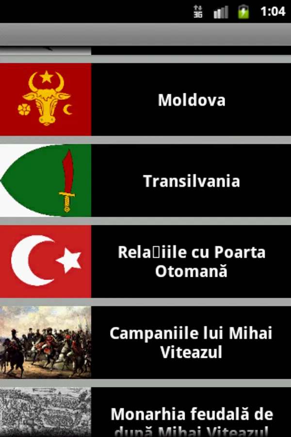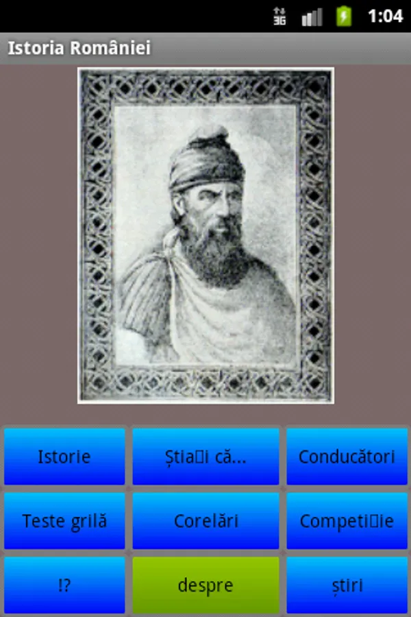 The application aims mainly Romanian history (is presented entirely as 24 chapters. There also are presented to 24 of the most senior leaders and the Romanian state). It also contains three types of tests totaling around 3,500 questions of universal history, from ancient times until today. After the last updates were added and 7 Timeline.