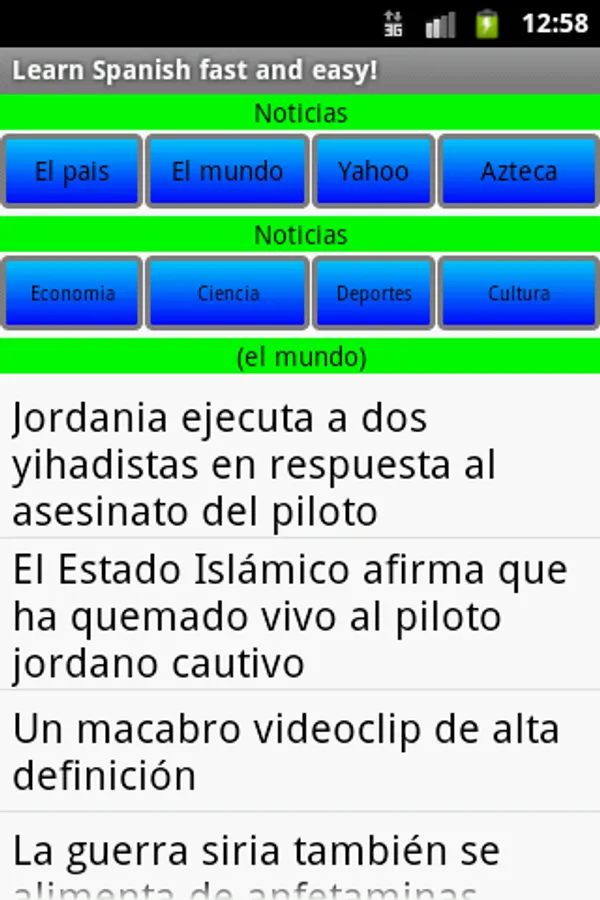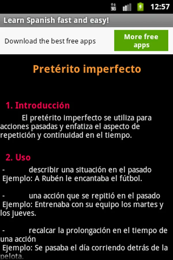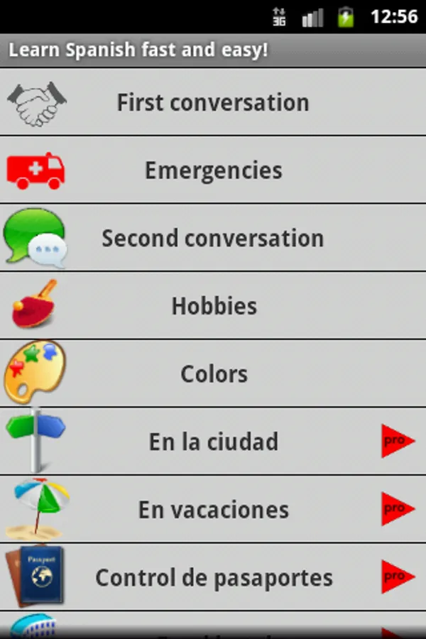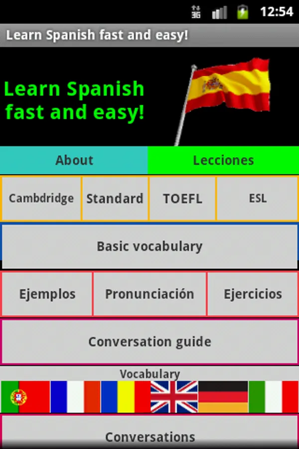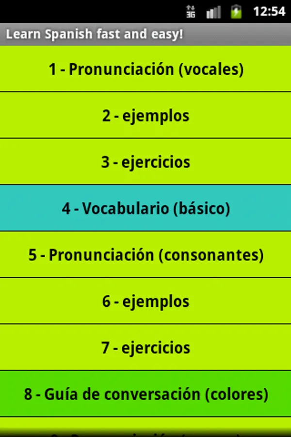 This is one of the best Spanish learning apps out there. It contains pronunciation rules and examples, grammar theory and exercises, vocabulary, conversation guides, quizzes, games , news and many more, so you can learn Spanish fast and easy. This free version is meant to get to to level A2 or even B1. Have fun learning!
