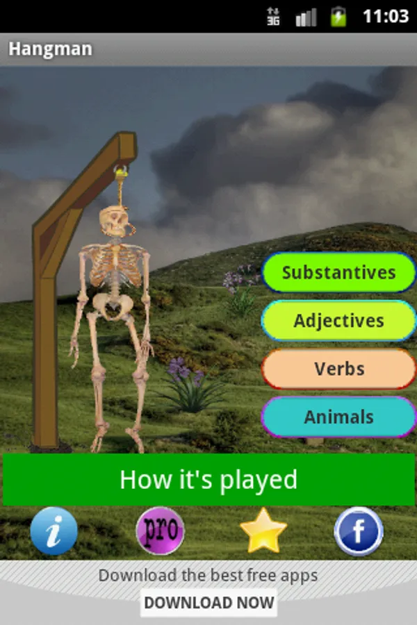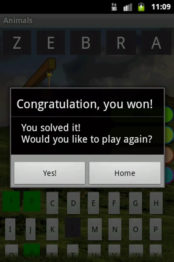 This is a version of the well known game Hangman. You have to guess the letters in order to find out the hidden word. After six wrong guesses you loose the game.