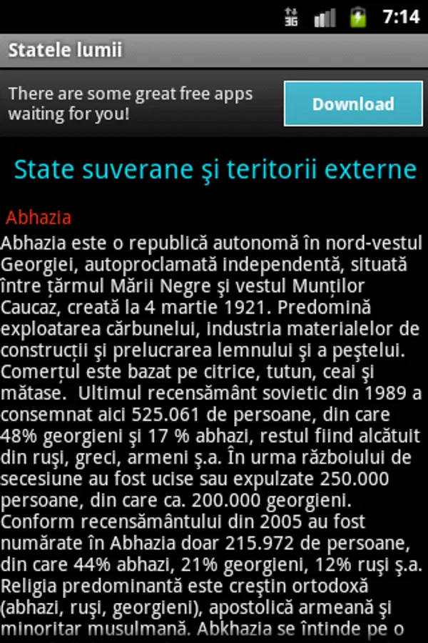 Download now the best application of geography in Romanian! Whether you're a student, teacher, student or just curious, this app will help you and I will make your life easier! At home, on the subway or at school, you can do test, learn and have fun while you can!