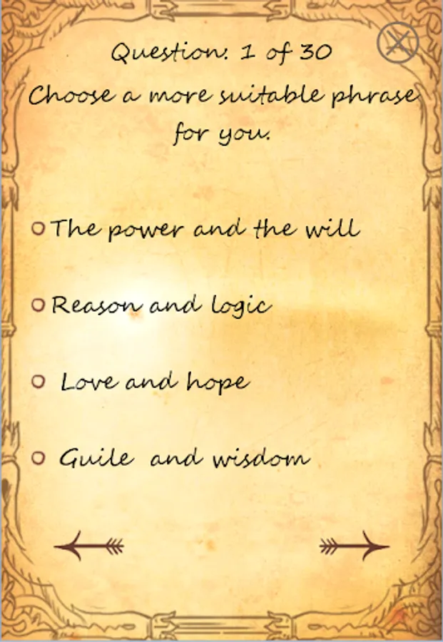 Have you ever thought that you could have your own insignia, the thing that would distinguish you? Pass this test and our game will draw your own crest, which shows your inner world and your personality. This game has more than 160 combo, you will get easy questions everybody can answer, beautiful design.