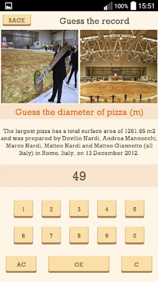 The game has many levels with real data from the Guinness World Records. You are given a description and a picture of the record, you need to guess its meaning. How accurate can you see on the percentage scale.