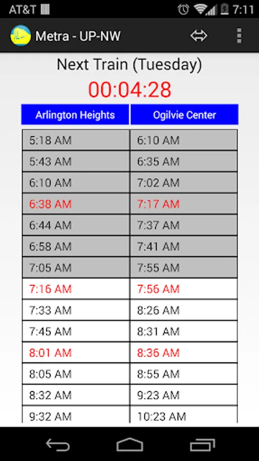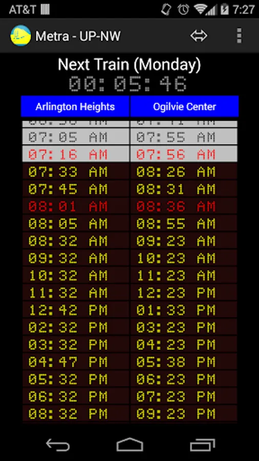 Find the next express or regular train based on the time now and your destination on the Metra Harvard line.