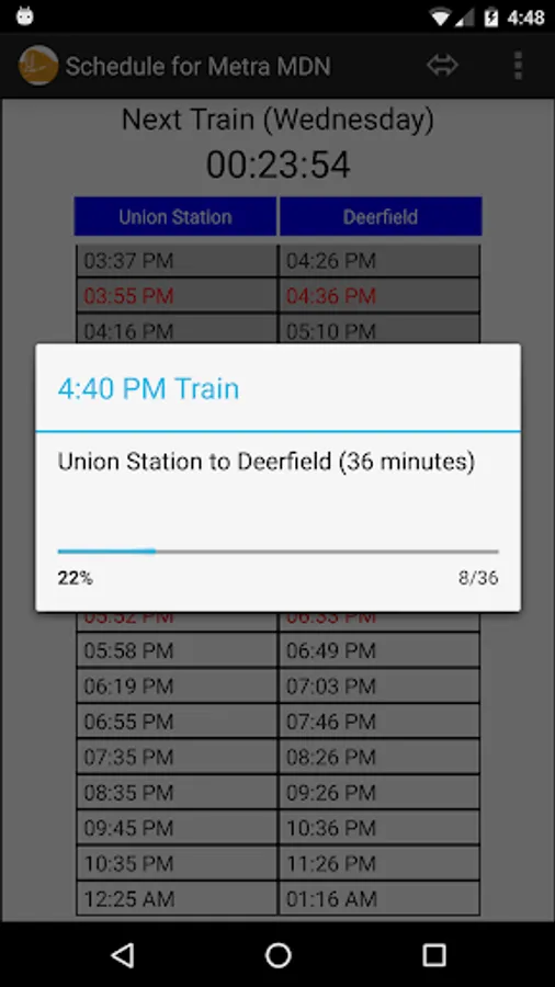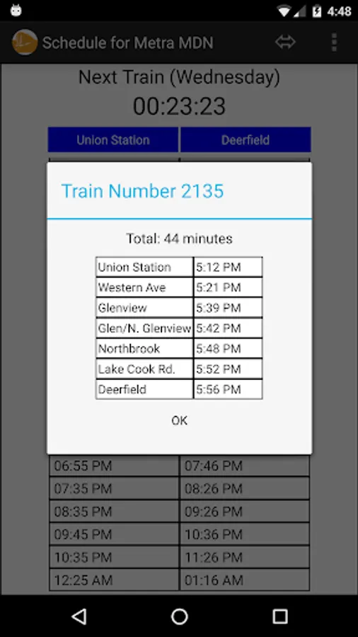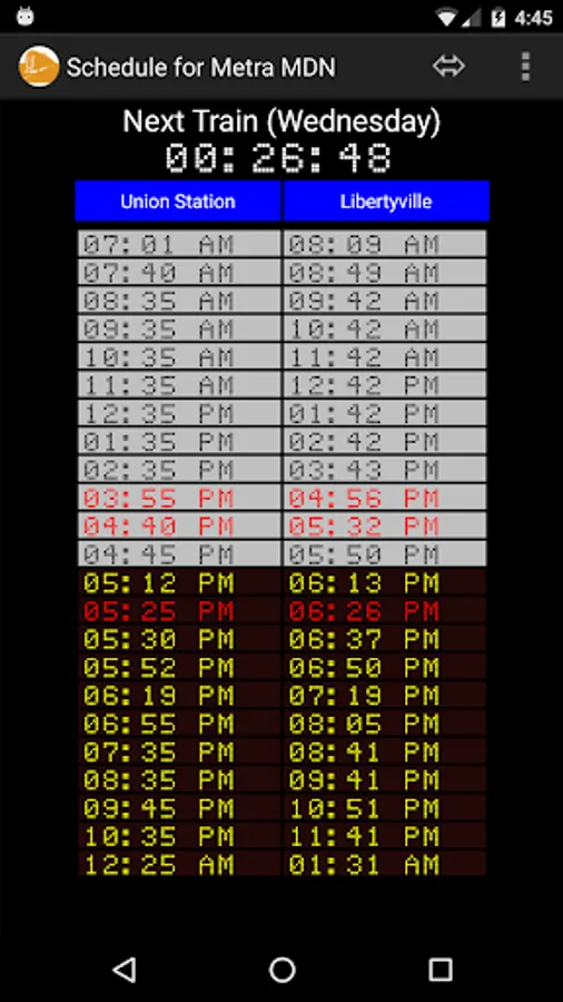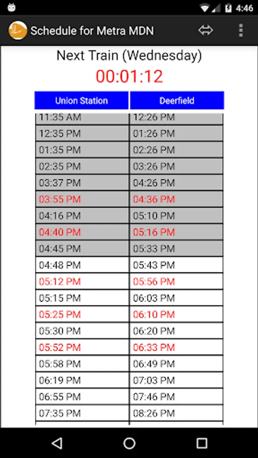 Find the next express or regular train based on the time now and your destination on the Metra Milwaukee District North Line.
