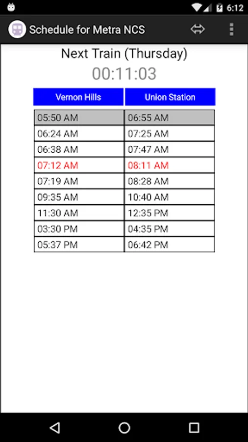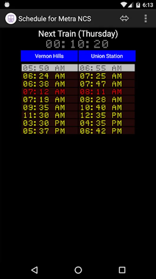 Find the next express or regular train based on the time now and your destination on the Metra North Central Service.