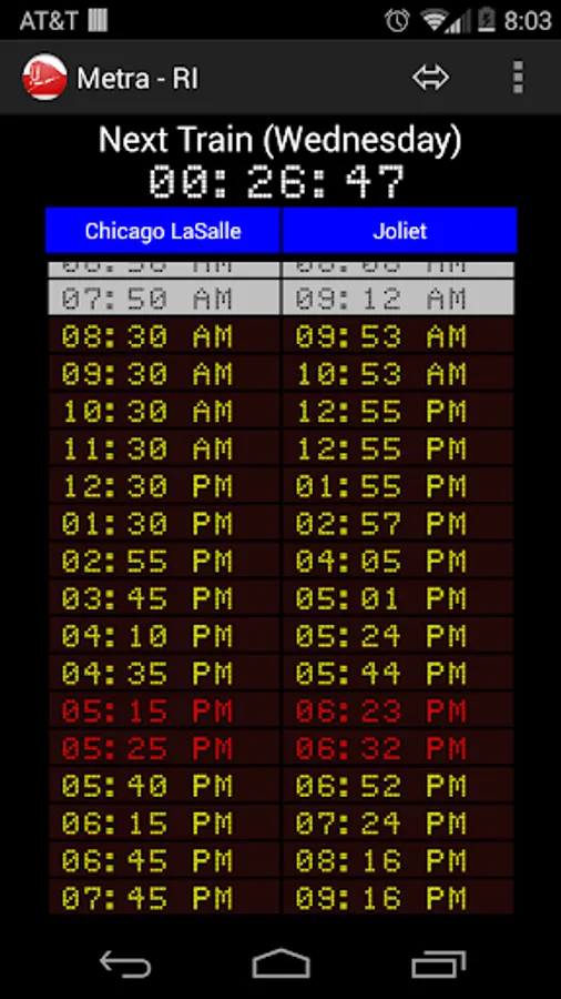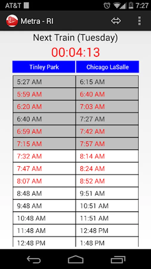 Find the next express or regular train based on the time now and your destination. You can find the entire train schedule for weekdays and weekends too.