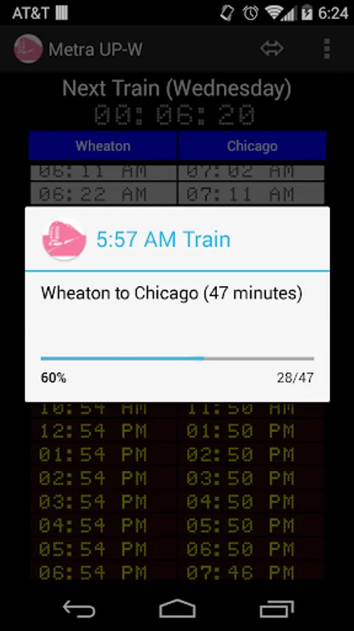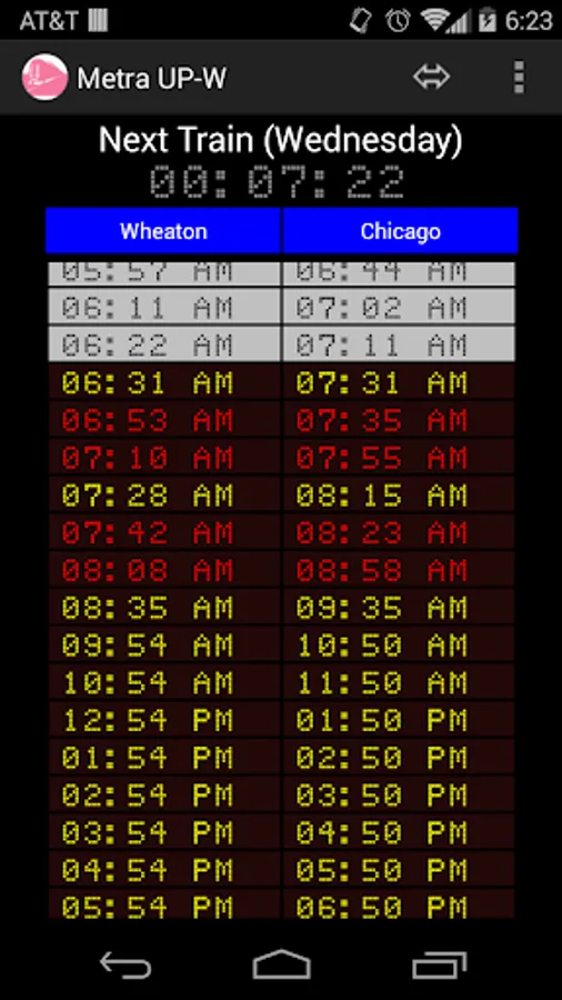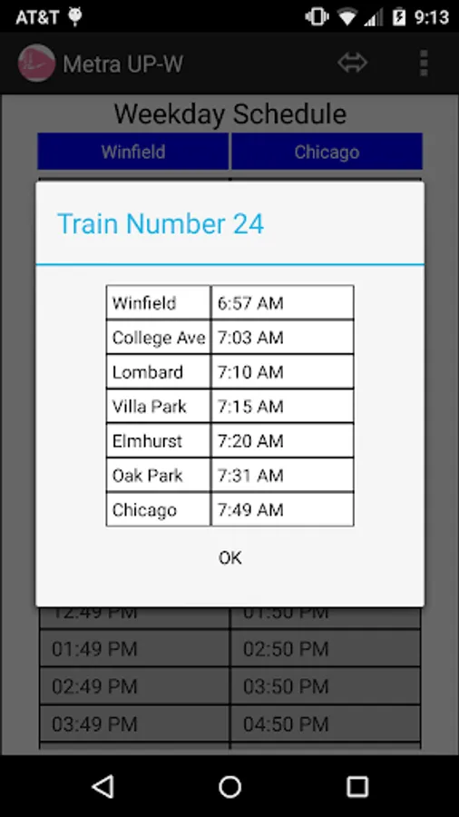 Find the next express or regular train based on the time now and your destination on the Metra Union Pacific West line.