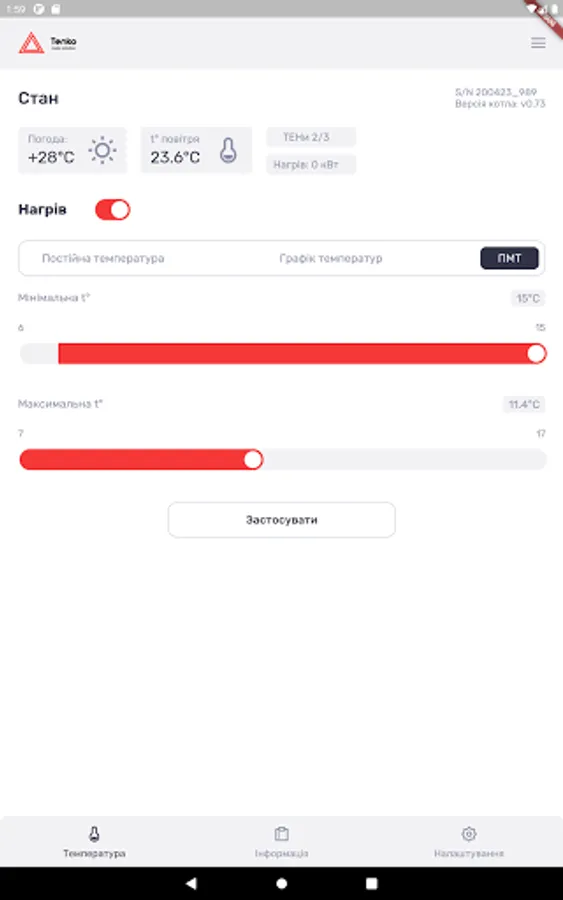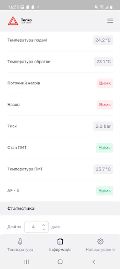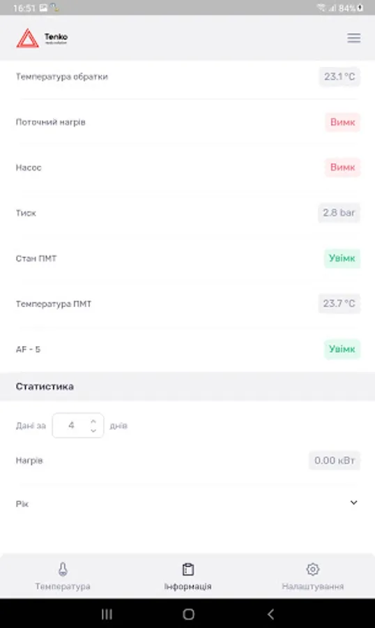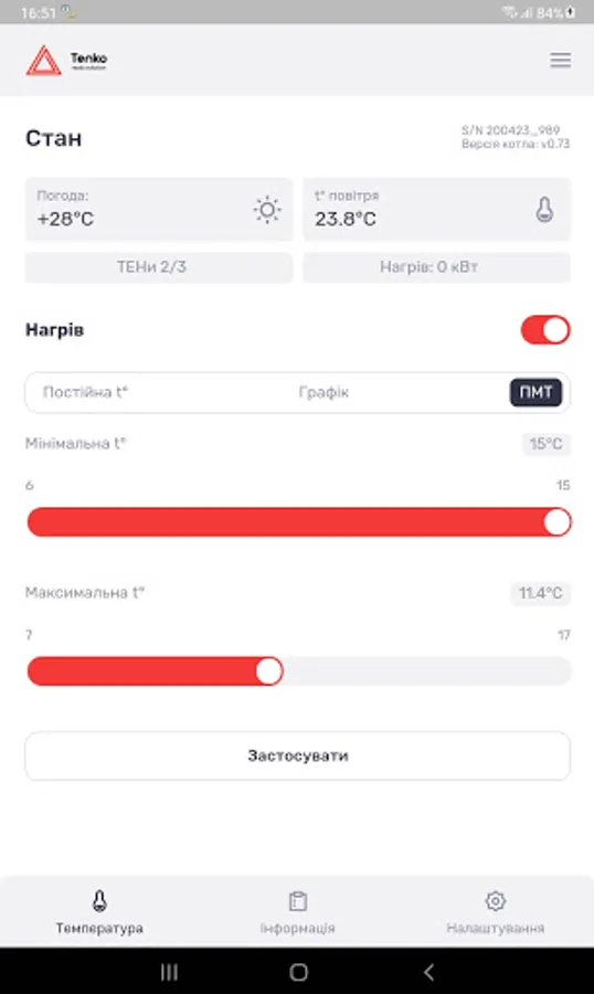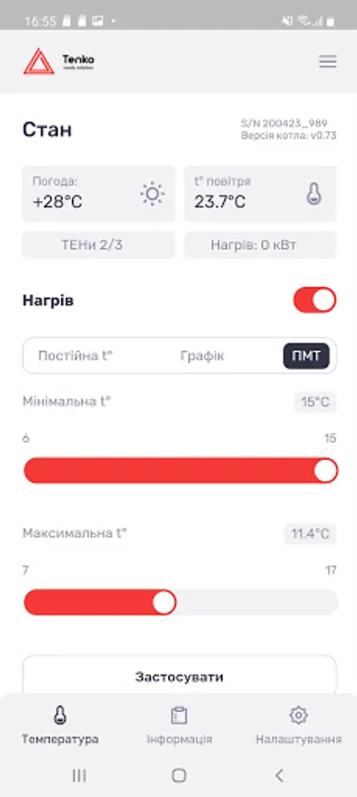 This application is intended for the remote control of Tenko Smart boilers manufactured by Tenko.