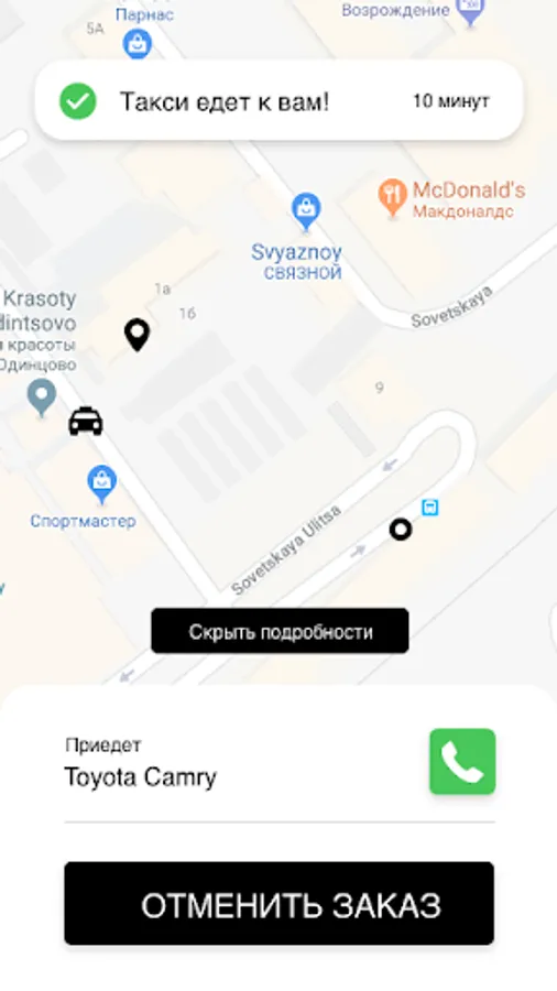 The app shows you the nearest car, working at low rates. The possibility to call the driver, the option to leave a review about the trip to improve service. Thank you for your choice. Odintsovo on the cost of the trip to 150 rubles. Created for you.