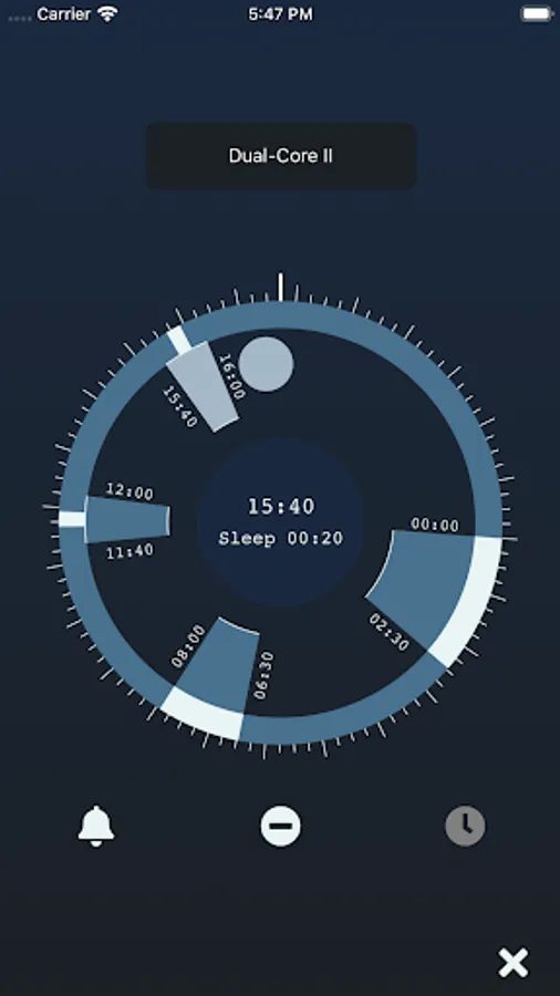 Biphasic — 5-7 hours during the night and 20 minutes during the day (3 variants)