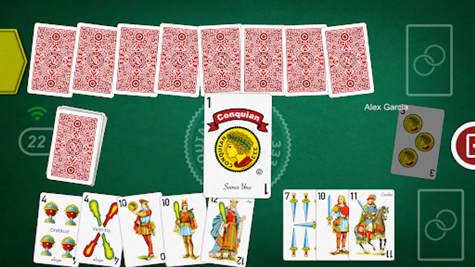 The game has all the rules of the classic Conquian, 8 or 9 cards are dealt to win with 9 or 10. The App only allows valid movements during the game.