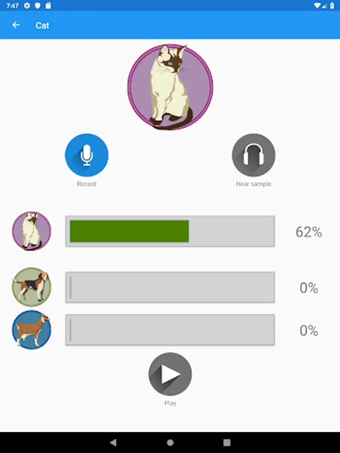 The app includes a smart algorithm that detects how close you are to the real animal.