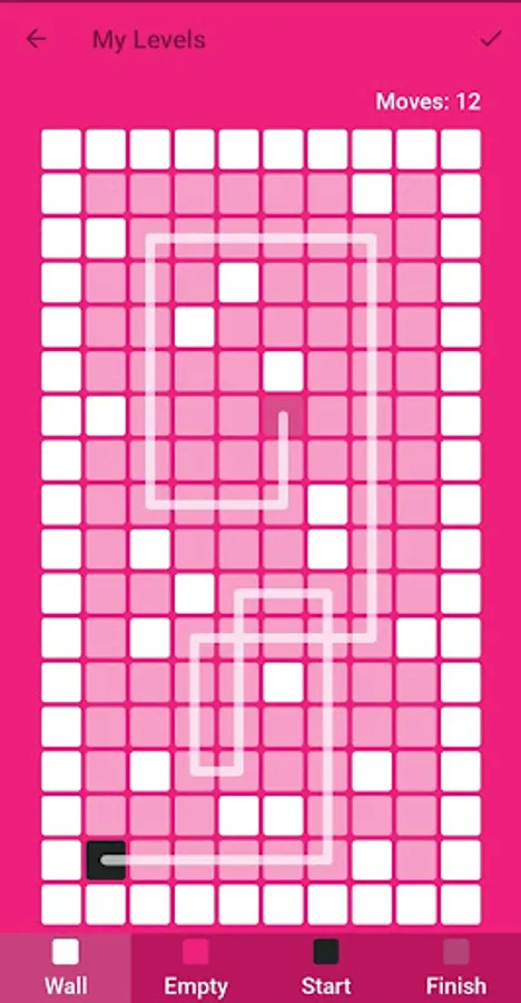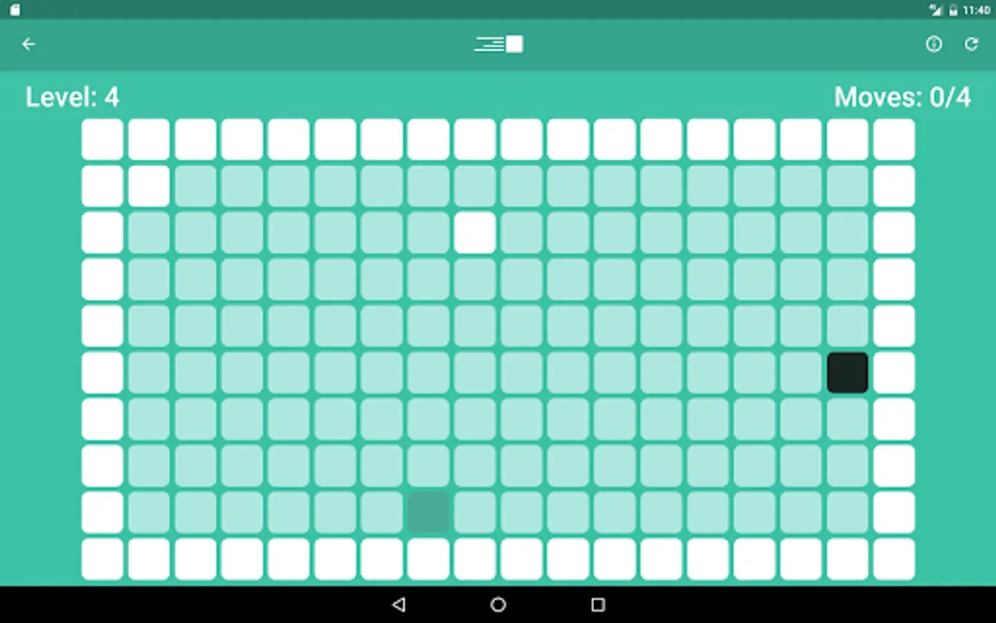 Swipe your finger along the level to move the black block to the grey finish area. However the black block won't stop until it runs into white wall. You will have to figure out a series of slides to get all the way to the goal in the least amount of moves possible.