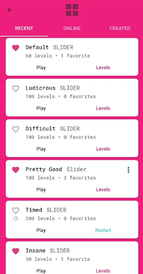 The first is the default "Play" mode, where you will have to slide your way through 600 levels that get progressively more difficult.