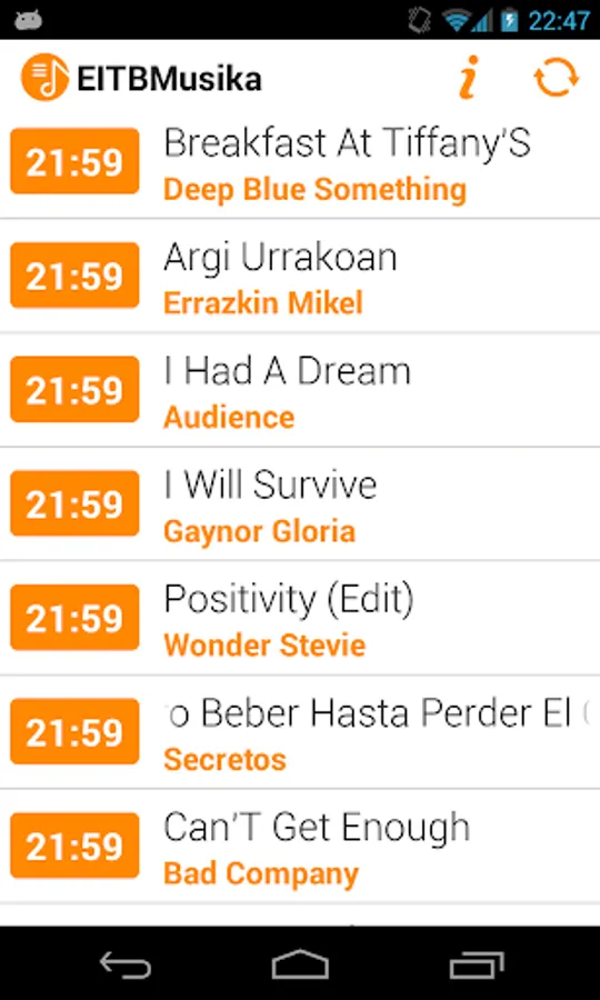 EITB musika irratian (Euskadiko irratirik onena) momentuko abestia zein den jakin dezakezu aplikazio honekin.