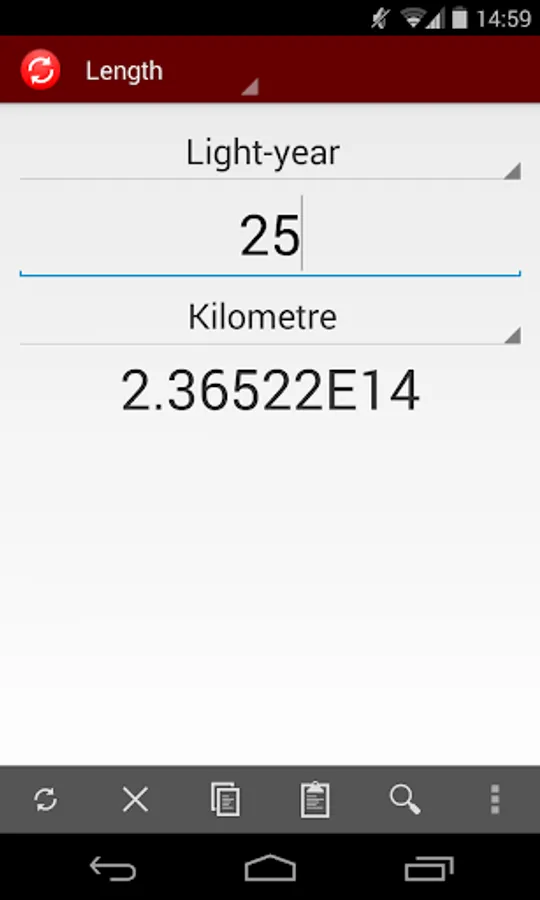 And what happens when you know the name of an unit but you don't know in which category it is ? Will you look for it in every category in order to find it ? No, Converter makes things easier : just hit the "search" button, write the name of your unit, and here you are !