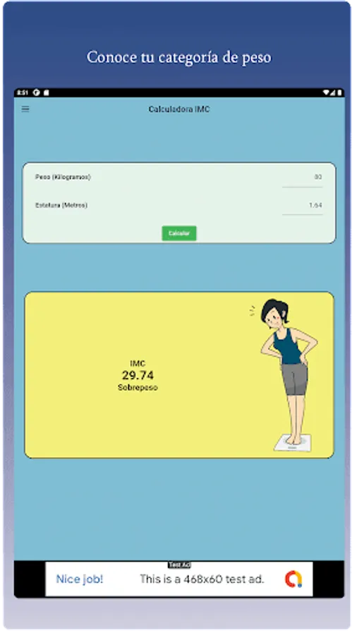 This calculator allows you to know your Body Mass Index, in order to have a reference to know your state of health. It serves as a prevention tool or alerts the user.