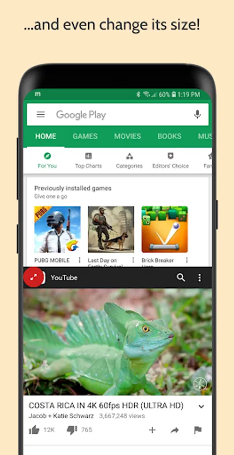 With Minimizer for YouTube you can enjoy your favorite YouTube videos on your phone or tablet, while performing other tasks, like browsing the web or checking your Facebook notifications.