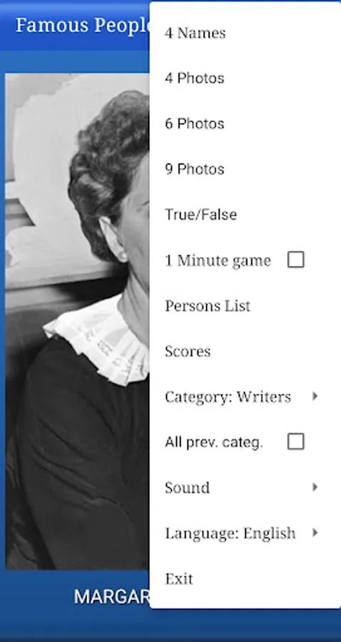 You can guess whose pictures are shown and get the rewards in each mode of operation of the game, in each category.