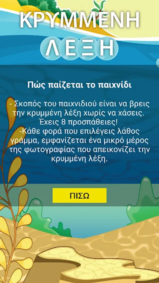 Each time you select the wrong letter, a small part of the picture shows the hidden word!