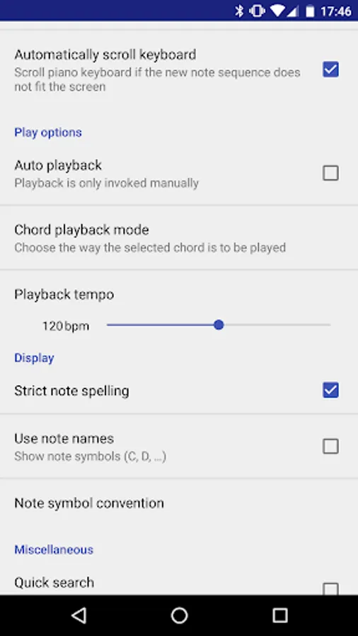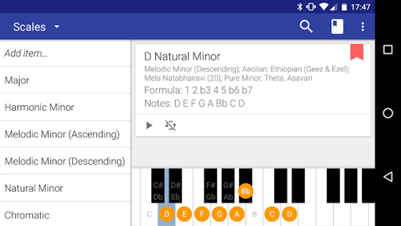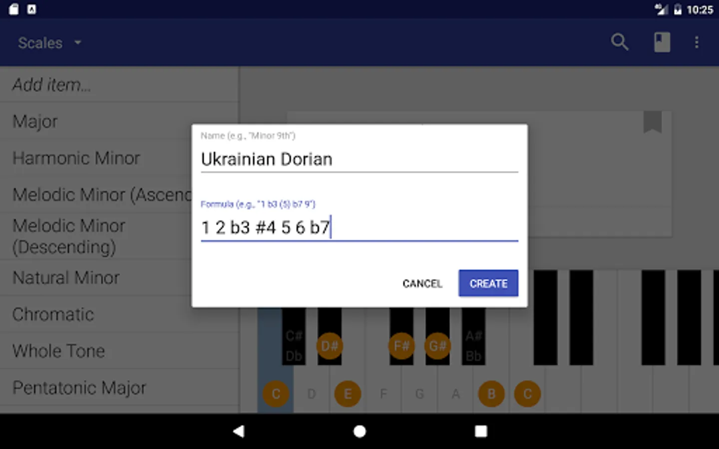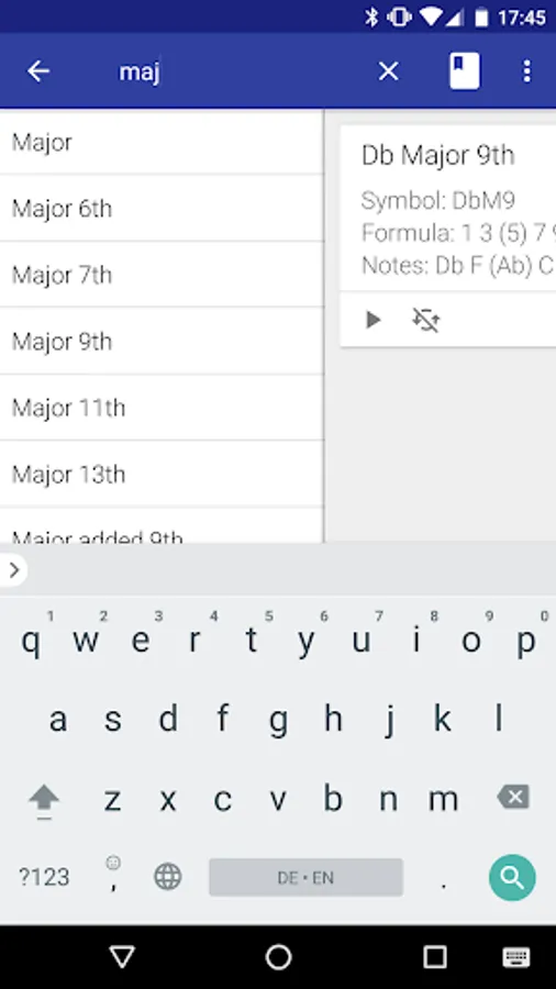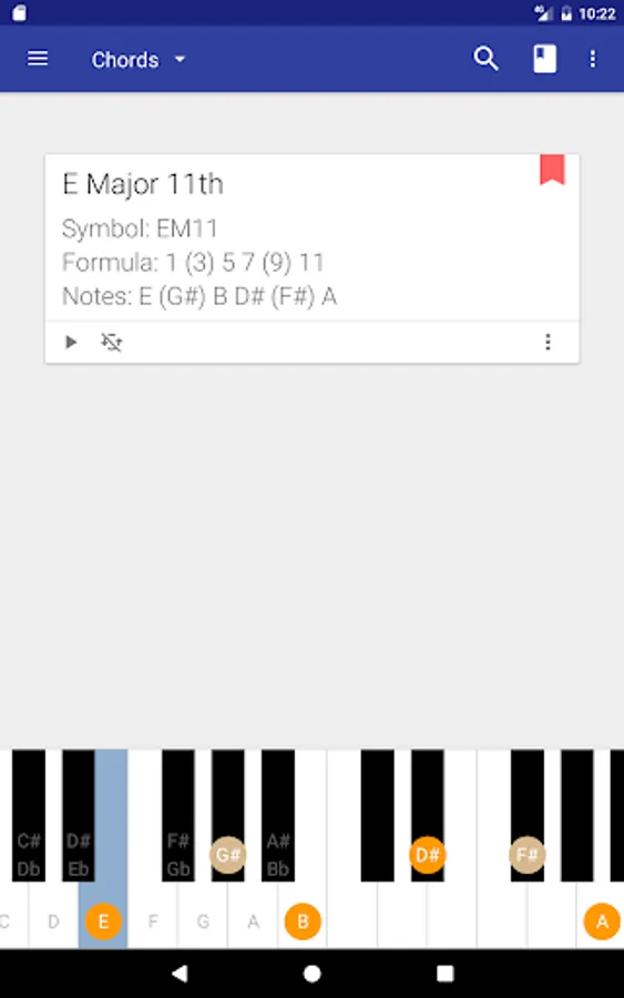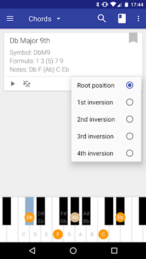 My Piano Assistant is a reference book of chords (with all inversions), scales and intervals. Given the name of an item and a root, the app shows the item formula, symbol (for chords and intervals), the sequence of notes and their positions on the piano keyboard. It also allows to listen to a selected item.