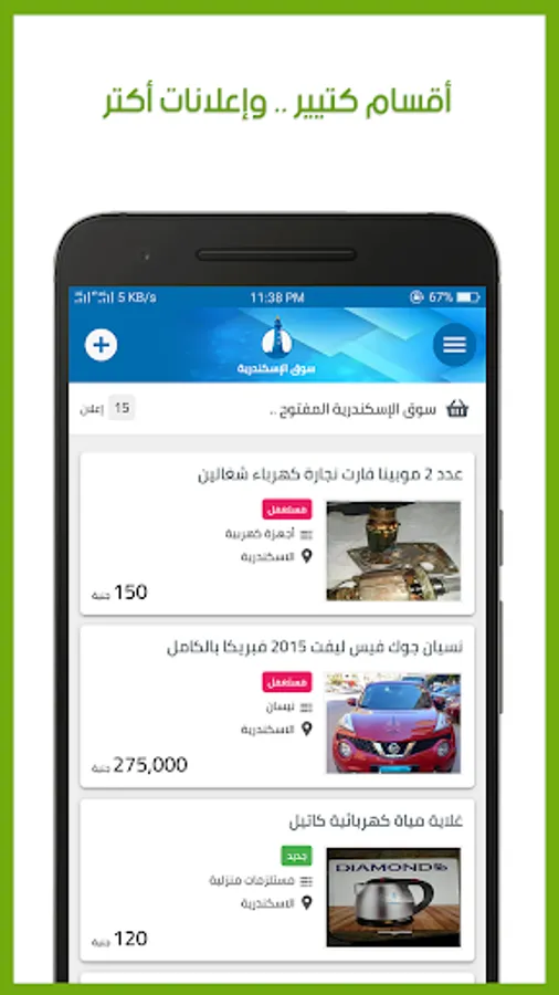 Cars, real estate, hardware, computers, laptops, mobiles, and many sections and categories in the free and open market of Alexandria.